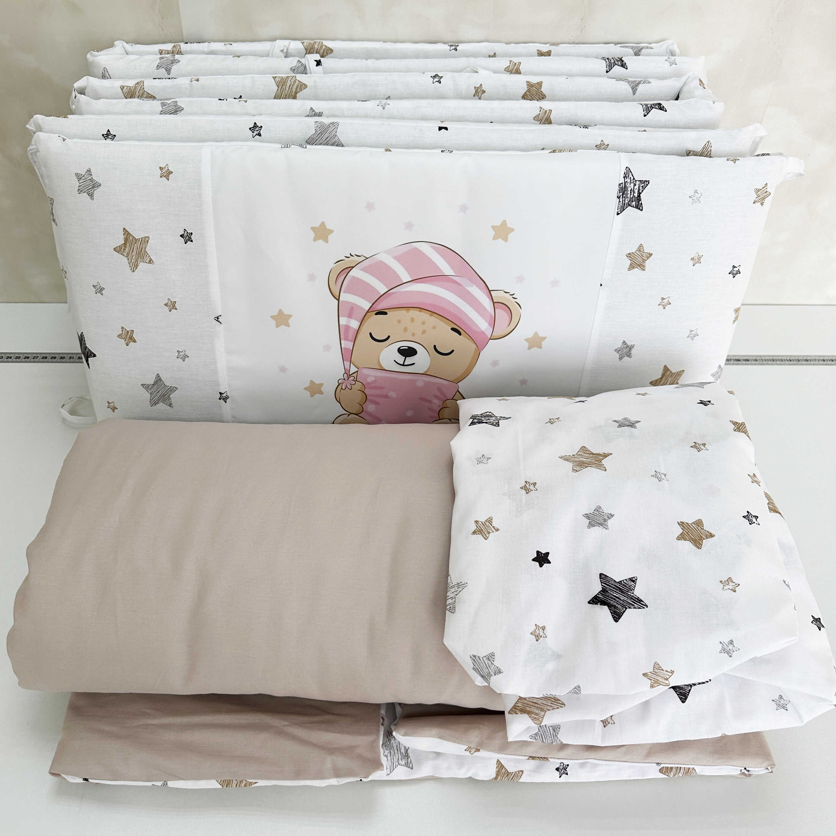Комплект в кроватку для новорожденных является необходимым пунктом в списке покупок для ребенка при рождении. Комплект в кроватку может комплектоваться разным количеством предметов, таких как подушка и одеяло, пододеяльник, наволочка и простыня, балдахин, бортики и другие элементы.