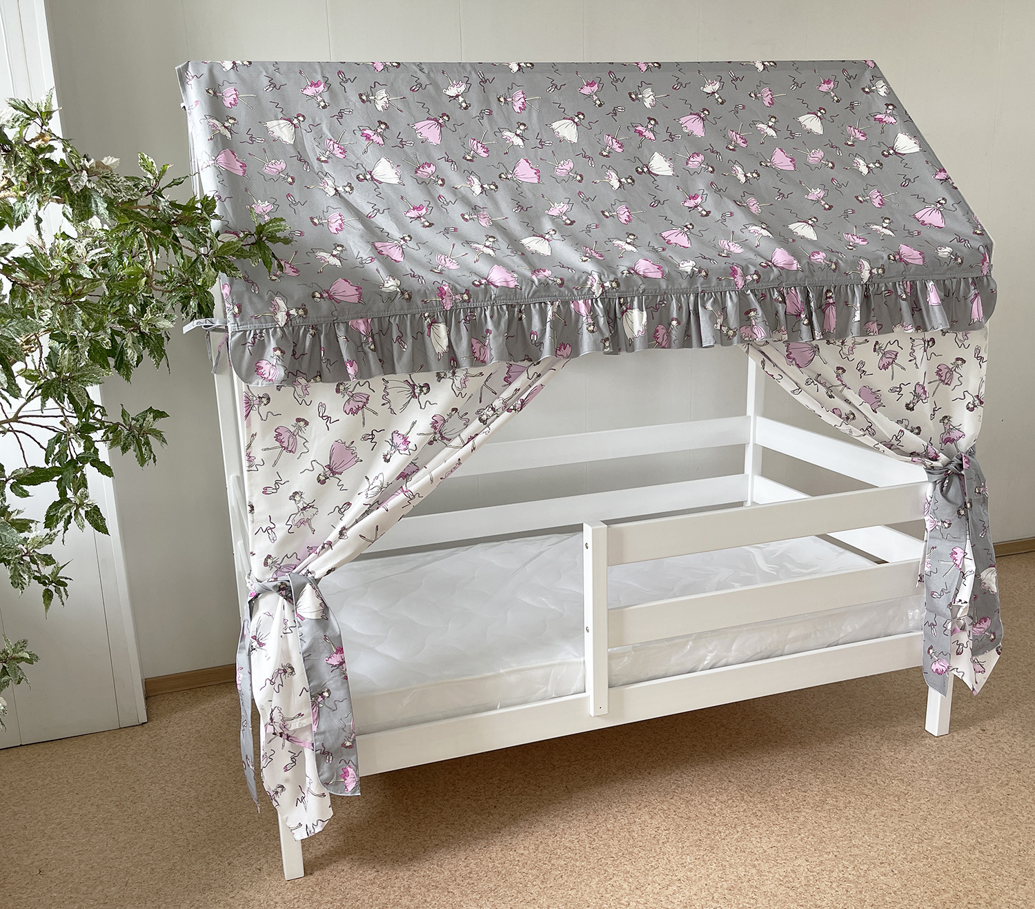 Крыша и шторы для кроватки домика ТД-47
